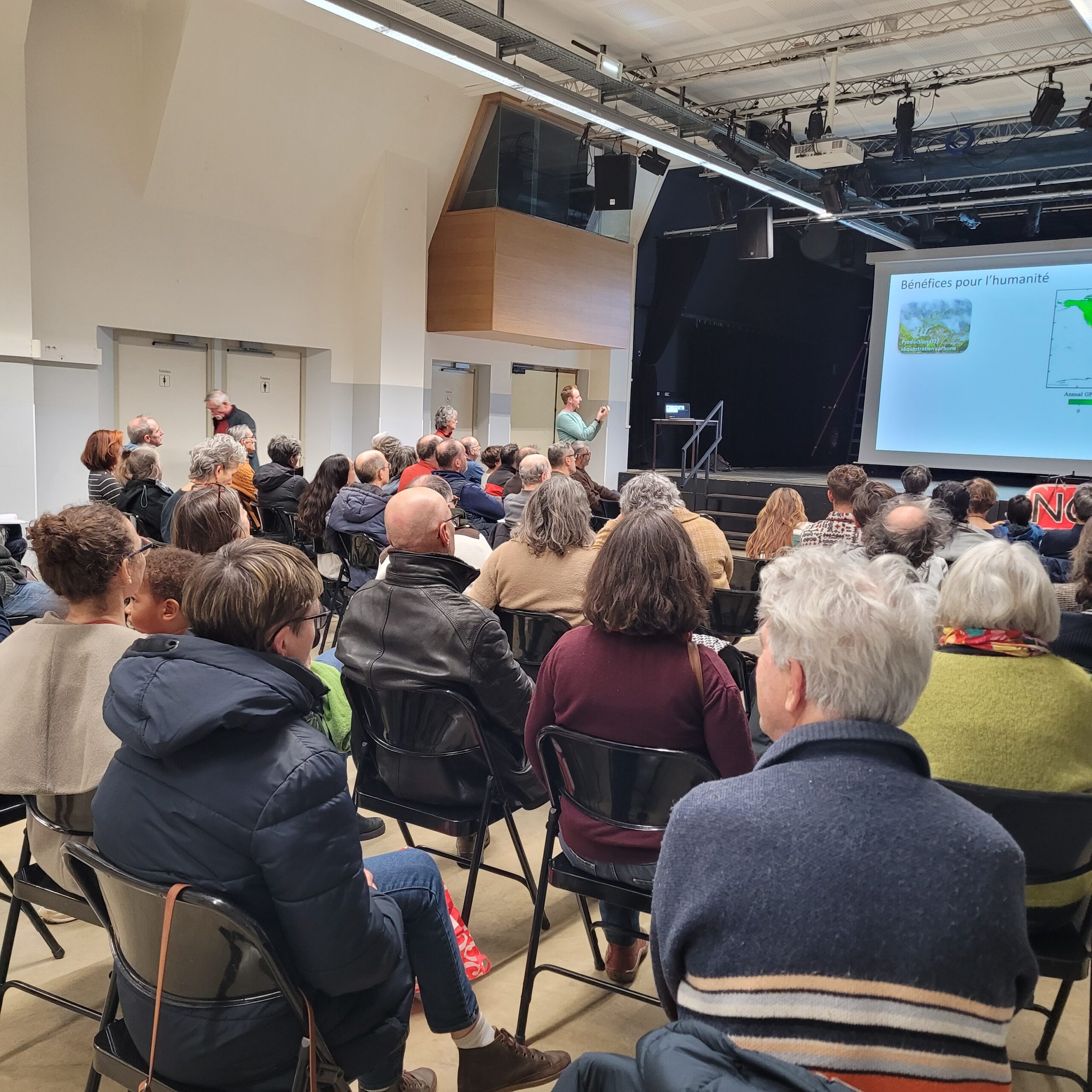 Nous avons commencé la rencontre par une conférence animée par Joël White, maître de conférence à l’Université Paul Sabatier. Biodiversité menacée, impacts sur nos vies et notre santé, relations entre pays du nord et du sud… L’exposé était tout autant global que local et porteur d’une vision individuelle et collective des enjeux auxquels nous sommes confronté.es. Joël a nourri notre soif de comprendre et d’agir par des exemples concrets et l’échange qui a suivi a permis aux participant.es de questionner ou compléter le contenu de cette présentation sur laquelle nous pourrons revenir dans un prochain article.