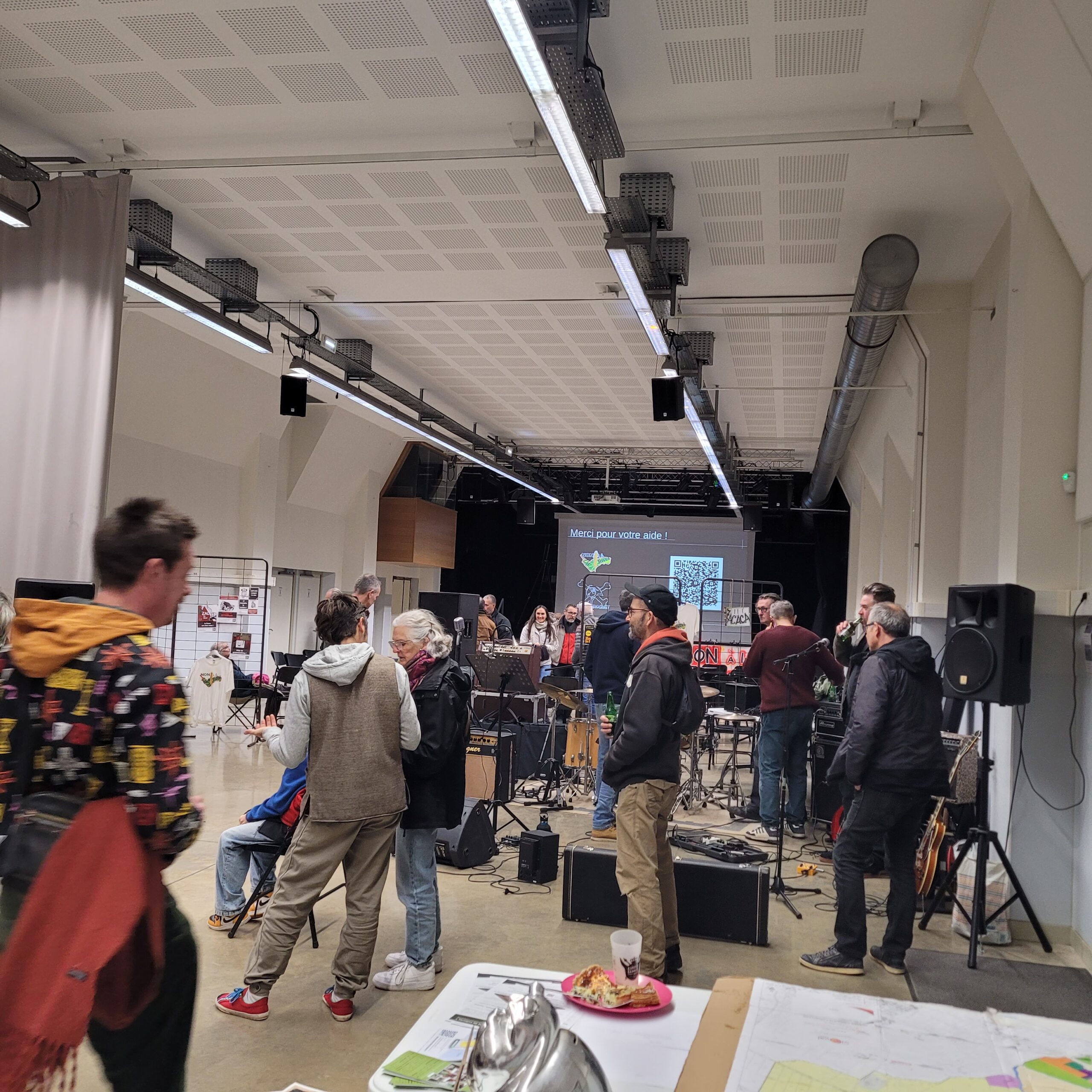 Le public a ensuite été invité à former des petits groupes pour préparer des questions à l’intention de ces actrices ou acteurs impliqué.es dans un autre rapport à la nature, l’environnement, la production et la distribution de ce qui nous nourrit au quotidien. Un échange fructueux et des mises en relation qu’on espère durables car nous sommes loin d’avoir épuisé toutes les questions et les sujets qui nous préoccupent et nous mobilisent !